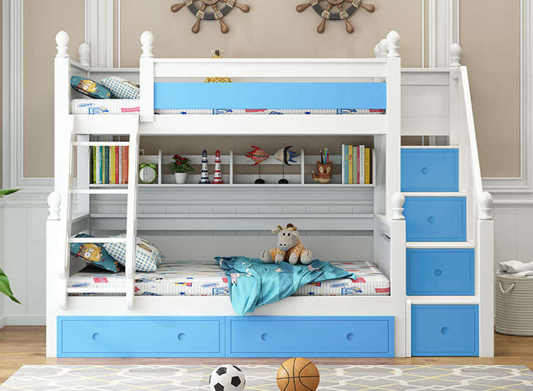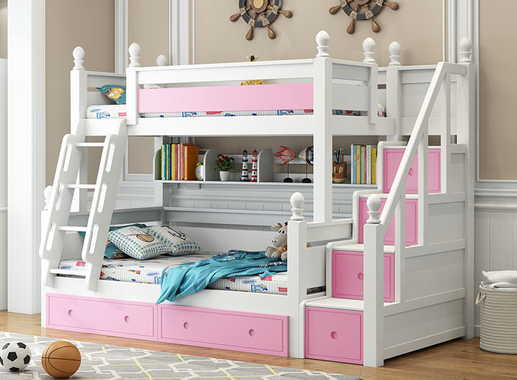 【品牌】金多喜 【产品名称】橡胶木梯柜子母床 【型号】XJM051 【风格】美式 【材质】实木 【产品尺寸】参见金多喜商城 【产品产地】江苏徐州 【是否有安全拦板】有安全拦板 【家具结构】框架结构 【产品颜色】白色、蓝白、粉白 【产品五金】五金配件 【款式定位】品质奢华型